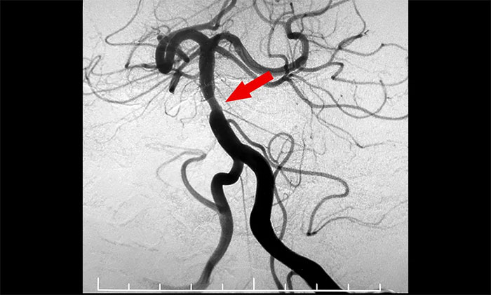4A腦血管病一科主任席剛明教授,4A腦血管病一科副主任王貴平博士會(huì)診指出,該患者為基底動(dòng)脈主干病變,呈現(xiàn)為“一線天”樣狹窄,考慮基底動(dòng)脈重度狹窄為患者右側(cè)肢體麻木并加重的根源。并且,狹窄處隨時(shí)可能形成血栓引發(fā)血管急性閉塞,一旦閉塞,患者將可能出現(xiàn)深昏迷、四肢癱瘓,甚至危及生命,可以說“命懸一線”,即使僥幸保住性命,大概率也會(huì)成為植物狀態(tài)或遺留其他嚴(yán)重殘障。