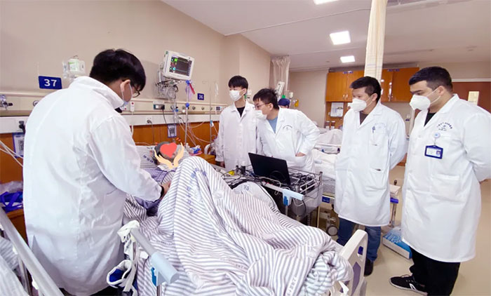 ▲ 醫(yī)院腦復(fù)蘇中心團(tuán)隊(duì)、華東理工大學(xué)團(tuán)隊(duì)在為昏迷患者進(jìn)行腦機(jī)接口評估