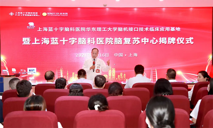 上海藍(lán)十字腦科醫(yī)院一直致力于昏迷患者的促醒工作,2016年開始啟動相關(guān)研究,一直孜孜不倦地探索這一醫(yī)學(xué)難題。為讓更多病人接受規(guī)范治療,推動腦機(jī)接口技術(shù)在意識障礙病人中的應(yīng)用,造福更多患者,2021年7月,上海藍(lán)十字腦科醫(yī)院聯(lián)合華東理工大學(xué)成立腦機(jī)接口技術(shù)臨床應(yīng)用基地暨腦復(fù)蘇中心。
