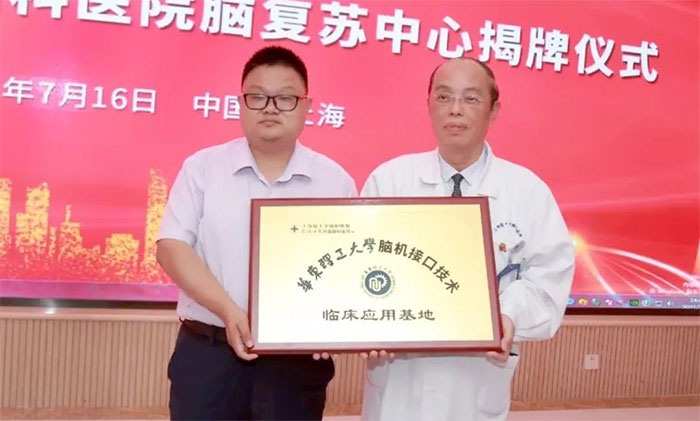 腦復蘇學科是醫(yī)院的重點學科,以潘仁龍主任、李士其教授等為代表的專家團隊,不斷探索腦促醒治療方法,積累了較為豐富的臨床經驗,形成了以神經外科、重癥醫(yī)學科、電生理等多學科協(xié)作,脊髓刺激、高壓氧、亞低溫治療等多手段結合的特色治療體系。也正因此,醫(yī)院才能有幸成為華東理工大學腦機接口技術臨床應用基地。