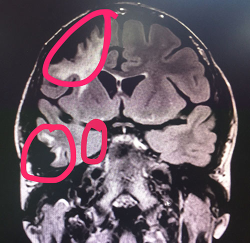 ▲標(biāo)記處為需要進(jìn)行手術(shù)的癲癇病灶區(qū)
