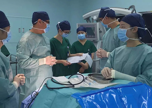 ▲手術(shù)準(zhǔn)備中左二為楊忠旭博士,右二為助理醫(yī)生杜立功