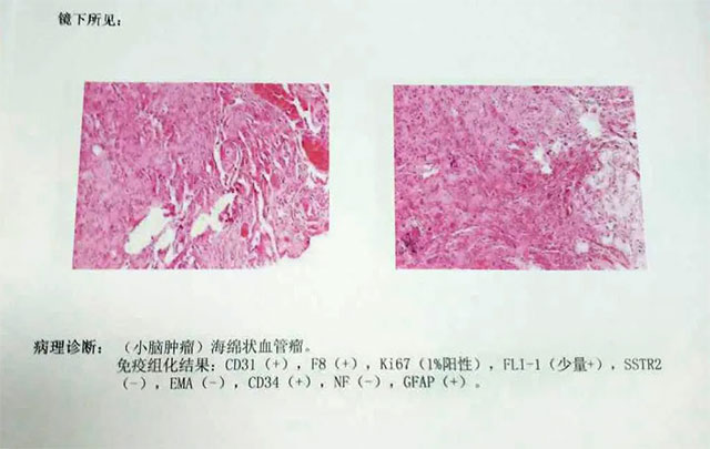 ▲ 術(shù)后病理確診為顱內(nèi)海綿狀血管瘤