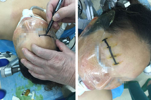 潘主任精心選取患者右側(cè)眉弓處直切口入路