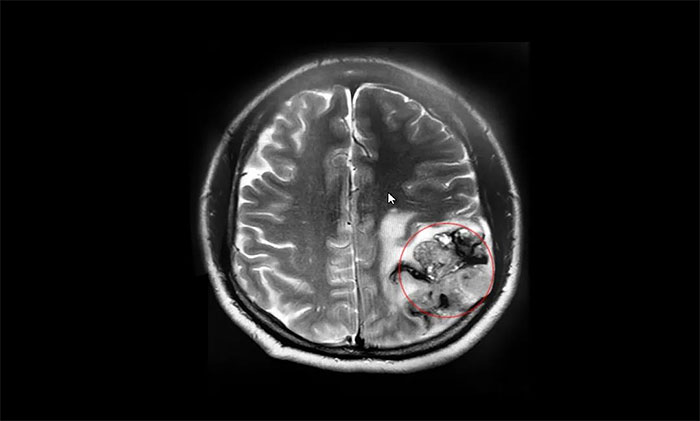 折騰來折騰去,一眨眼就到了9月底。王女士最終因?yàn)殡y以忍受的劇烈頭痛,被緊急送往當(dāng)?shù)厥嗅t(yī)院急診。CT、磁共振掃描顯示,腦部有少許出血,左額頂葉占位性病變?紤]為血管畸形伴出血可能,少突膠質(zhì)瘤不除外。