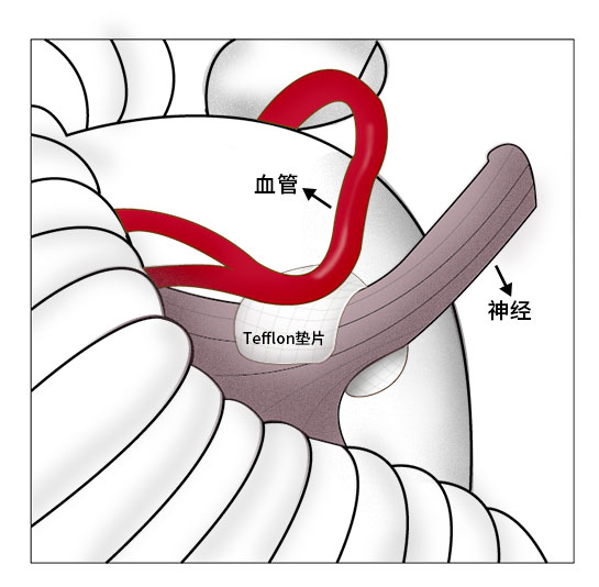 ▲ 微血管減壓術(shù),以Tefflon墊片將責(zé)任血管和神經(jīng)進(jìn)行分離