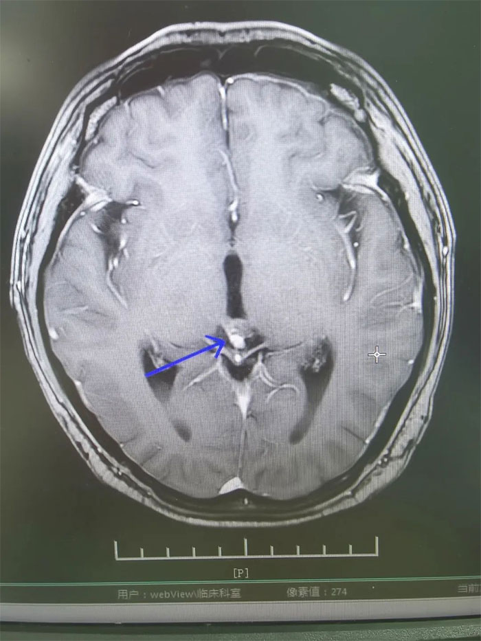 可發(fā)生性早熟。較早出現(xiàn)包括頭痛、嘔吐、嗜睡等顱內(nèi)壓增高癥狀,部分患者會出現(xiàn)記憶障礙。瘤體較大者,會出現(xiàn)耳鳴、聽力障礙、步態(tài)不穩(wěn)、眼球水平震顫等小腦壓迫體征。
