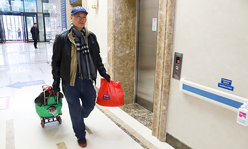 下午3:30,重癥患者的家屬探視時間到了。和往常一樣,年屆六旬的陳建平拉著塞得鼓鼓囊囊的行李車,步入上海藍十字腦科醫(yī)院9樓ICU重癥監(jiān)護室。時不時的,會有醫(yī)護人員和患者家屬跟他親切地打招呼。