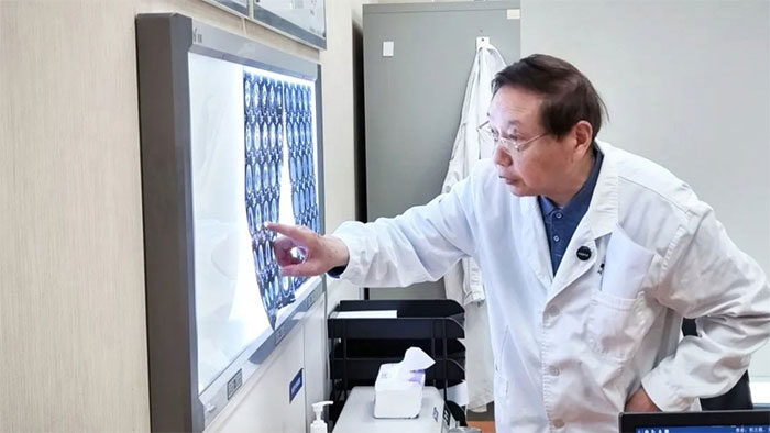 近日,在周范民教授指導(dǎo)下,6B神經(jīng)外二科副主任盧云鶴博士團(tuán)隊(duì)順利為一位曾經(jīng)由周范民教授手術(shù)、16年后腦膠質(zhì)瘤“復(fù)發(fā)”的患者行手術(shù)治療,一刀切除兩個(gè)病灶,最終病理結(jié)果排除膠質(zhì)瘤,讓患者轉(zhuǎn)危為安。